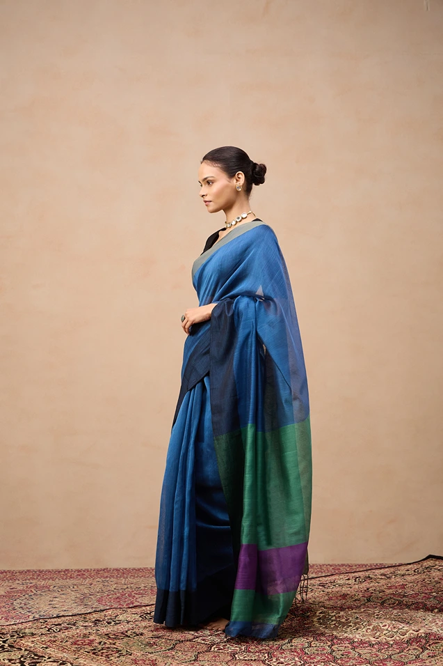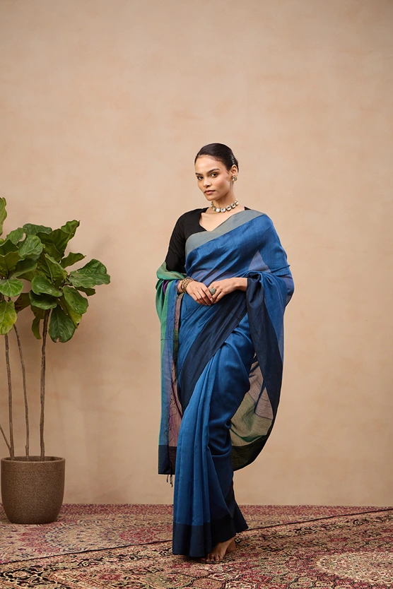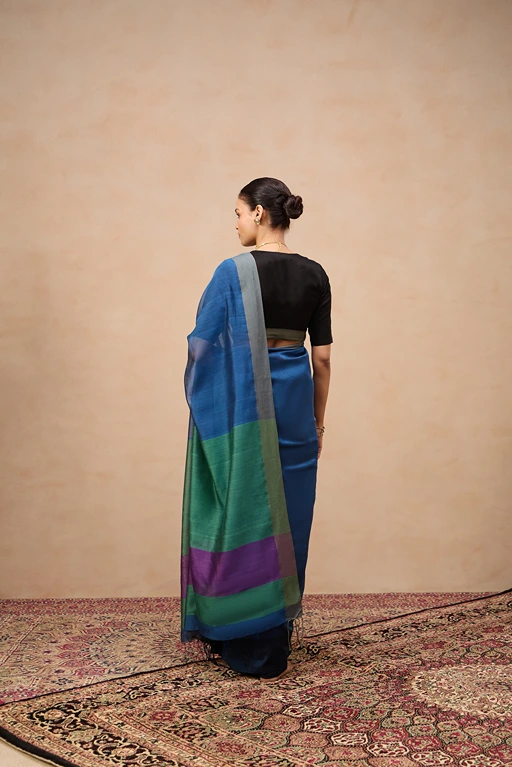 Chandrika is a handloom cotton silk saree that features bold, contrasting broad borders that frames the body with striking definition. The pallu as well as the blouse piece stands out in a complimentary contrasting shades. Ideal for festive occasions, weddings or formal occasions.