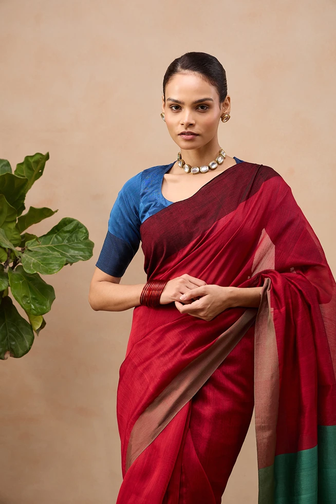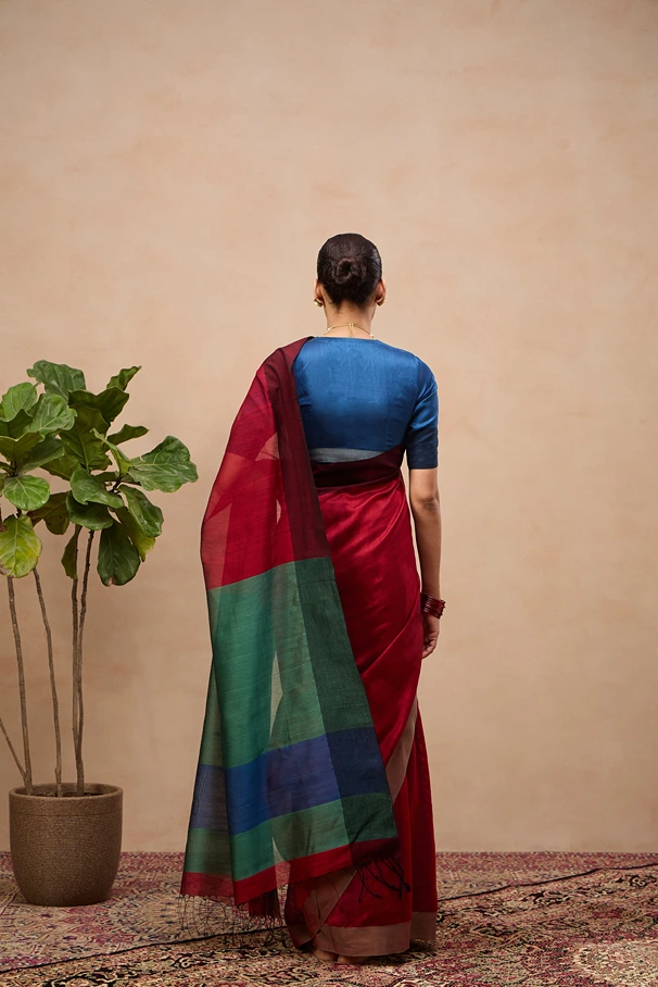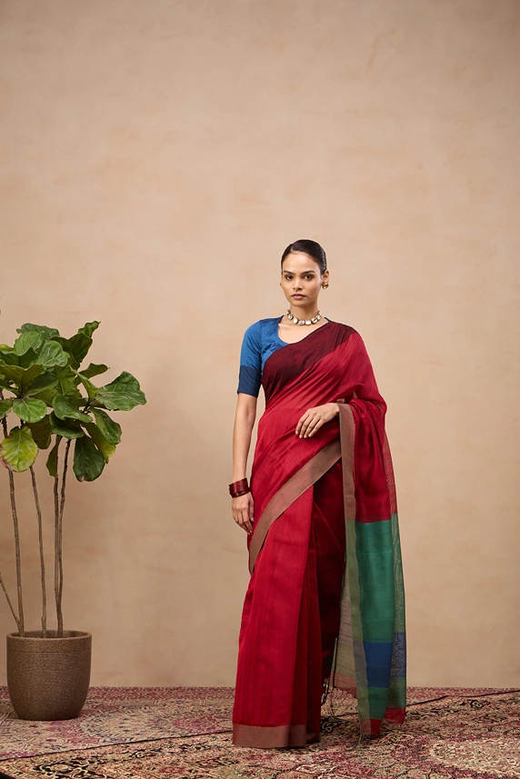 Chandrika is a handloom cotton silk saree that features bold, contrasting broad borders that frames the body with striking definition. The pallu as well as the blouse piece stands out in a complimentary contrasting shades. Ideal for festive occasions, weddings or formal occasions.