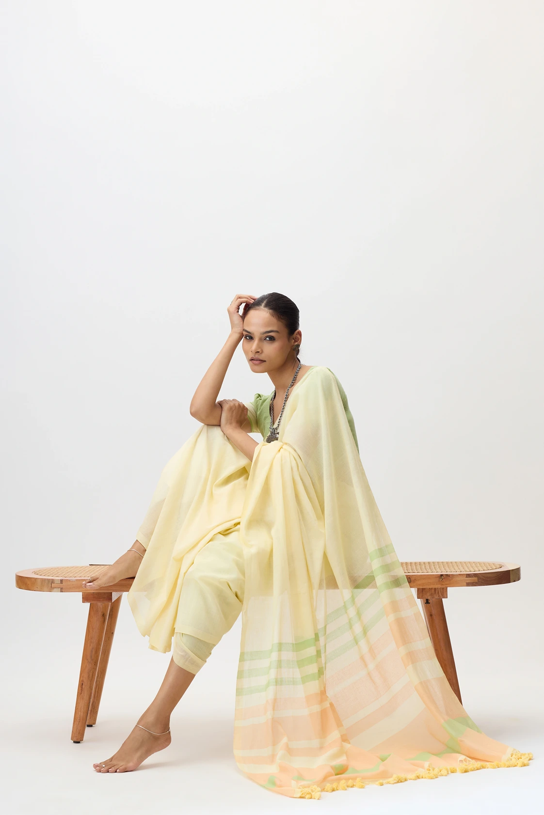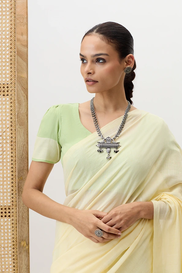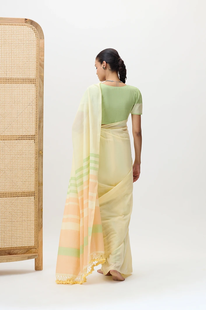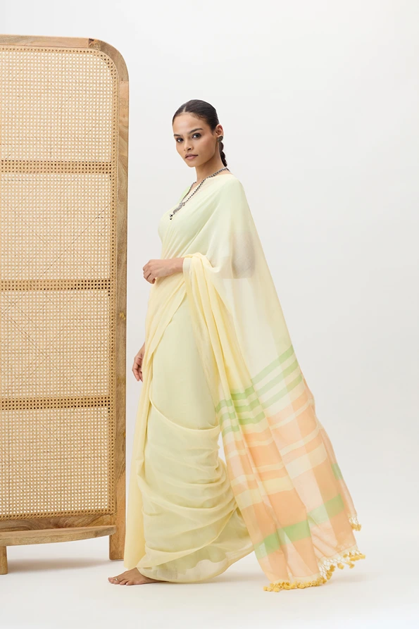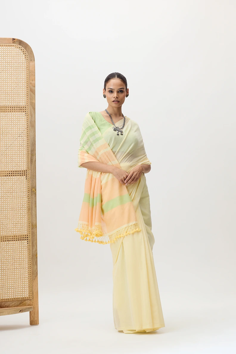 Ketki is a plain handwooven cotton saree with a stripped pallu combines minimal elegance with a touch of detail, showcasing fine craftsmanship and breathable texture. Its perfect for office wear,mcasual outings, or day time events where simplicity with a hint of style is appreciated.