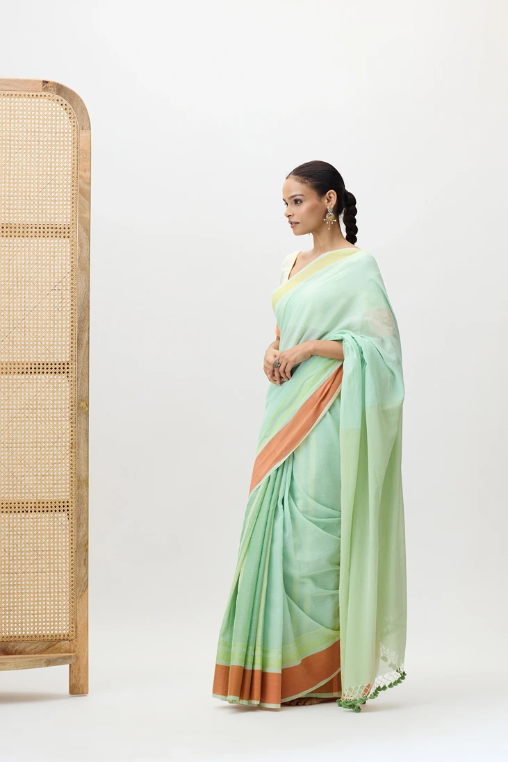 Palasha is a handwooven pure cotton saree that offers softness, natural texture, and elegant patterns crafted by skilled artisans. Ideal for daytime functions, cultural celebrations or formal events where comfort meets tradition.