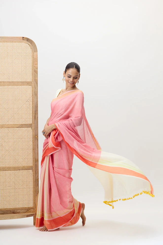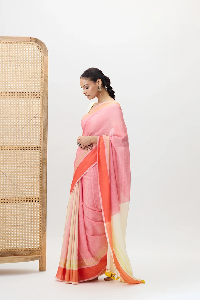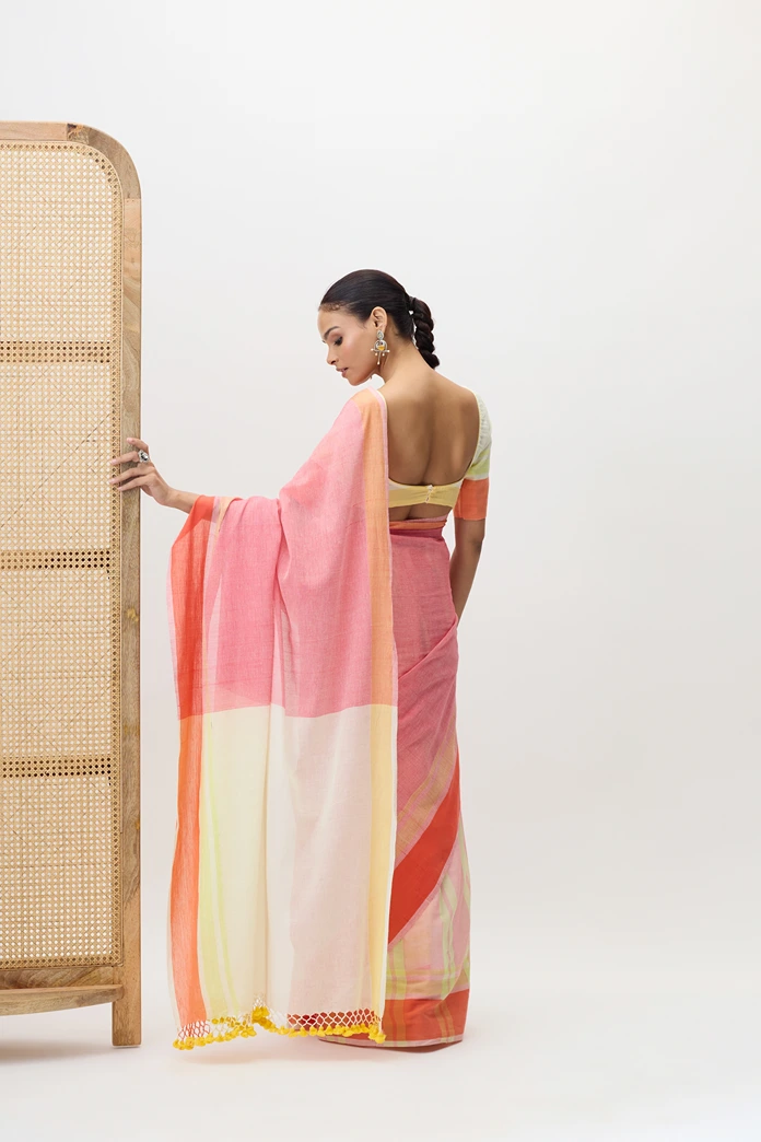 Palasha is a handwooven pure cotton saree that offers softness, natural texture, and elegant patterns crafted by skilled artisans. Ideal for daytime functions, cultural celebrations or formal events where comfort meets tradition.