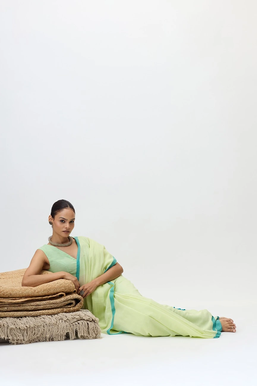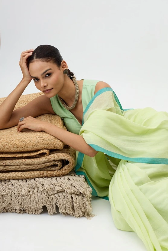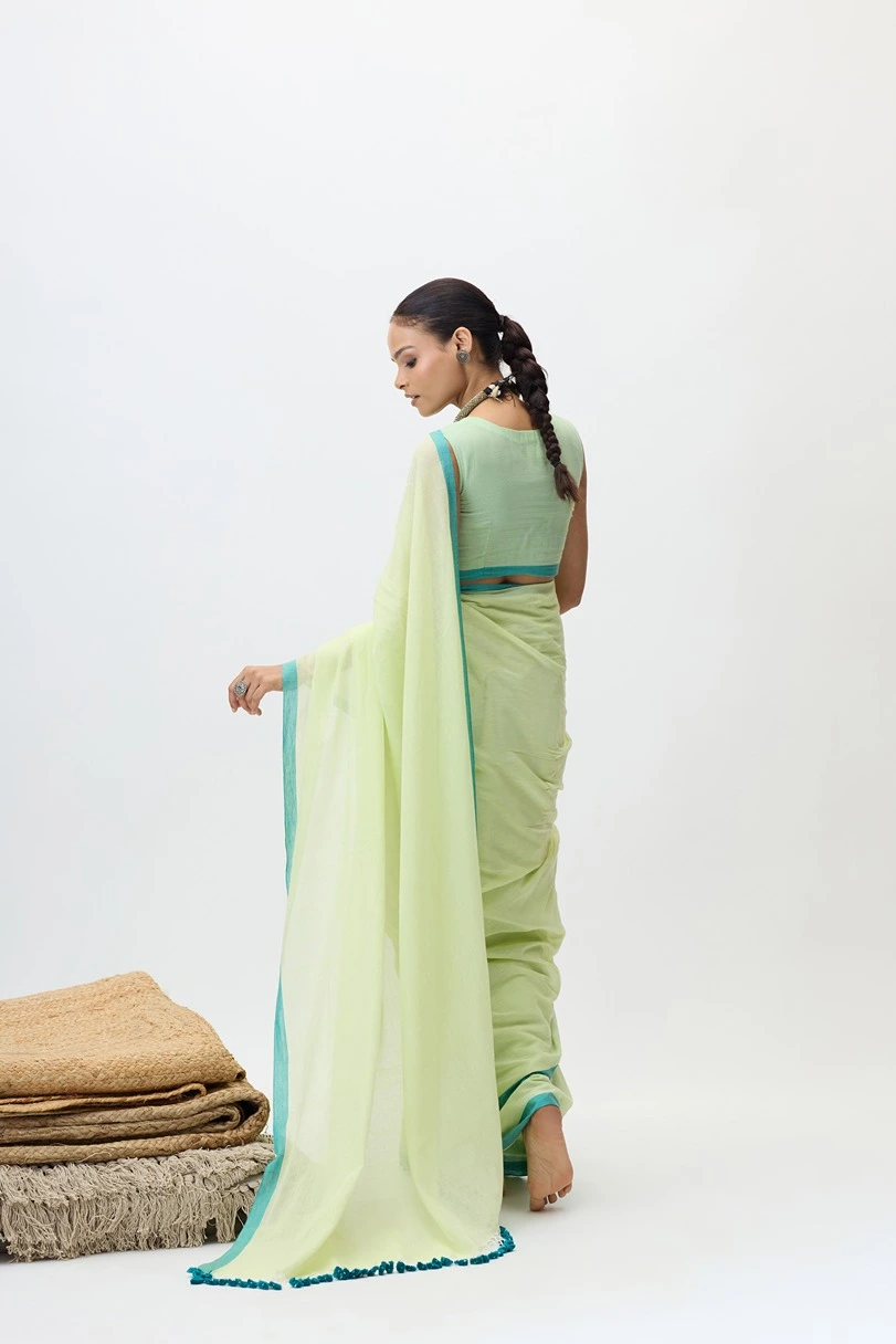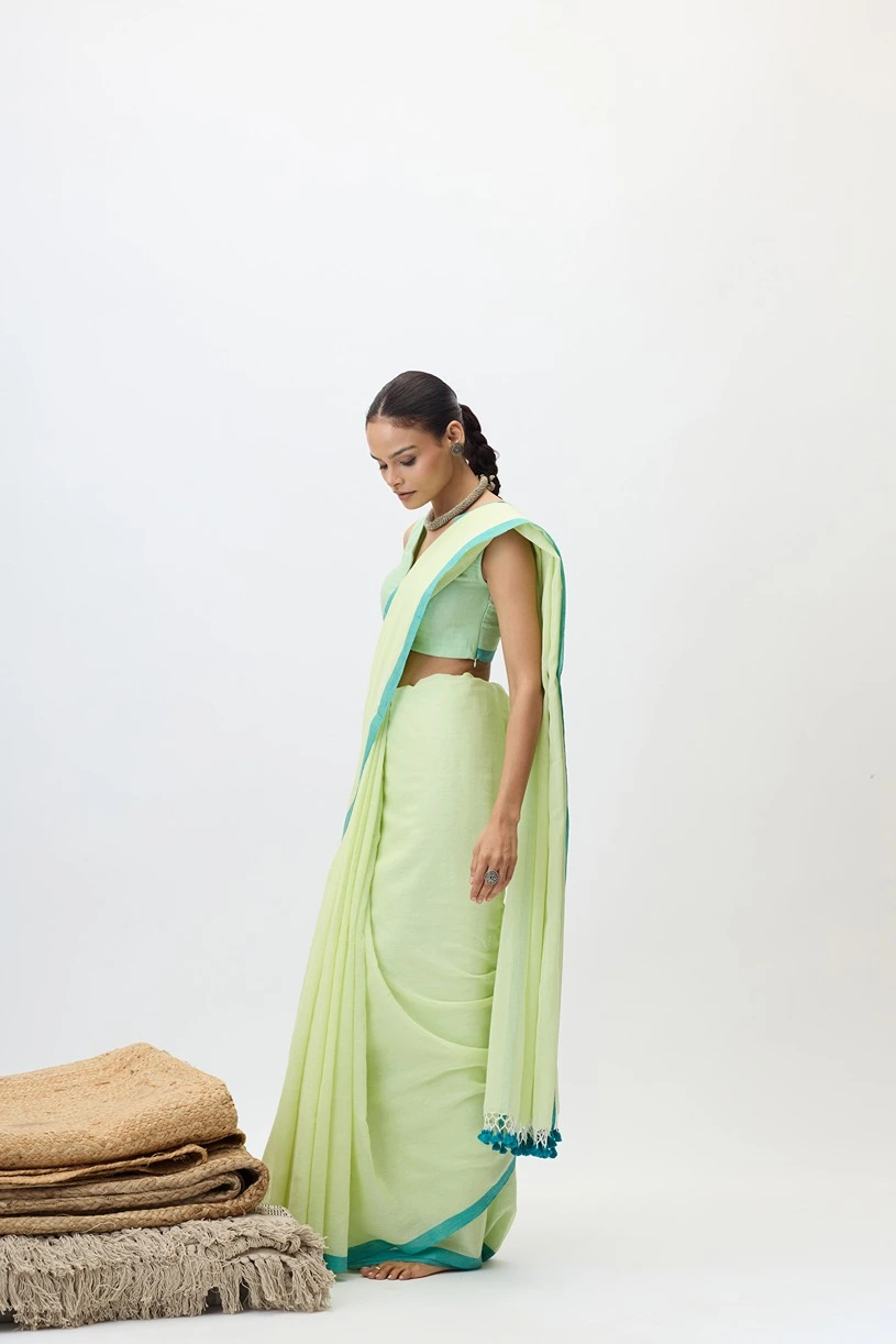 This handloom piece is a mul cotton saree made with lightweight, soft, breathable and fine handwooven cotton thread. It's delicate texture and natural sheen makes Vaanya perfect for a casual as well as a formal choice.
