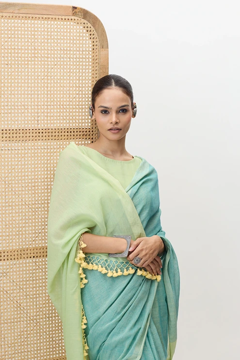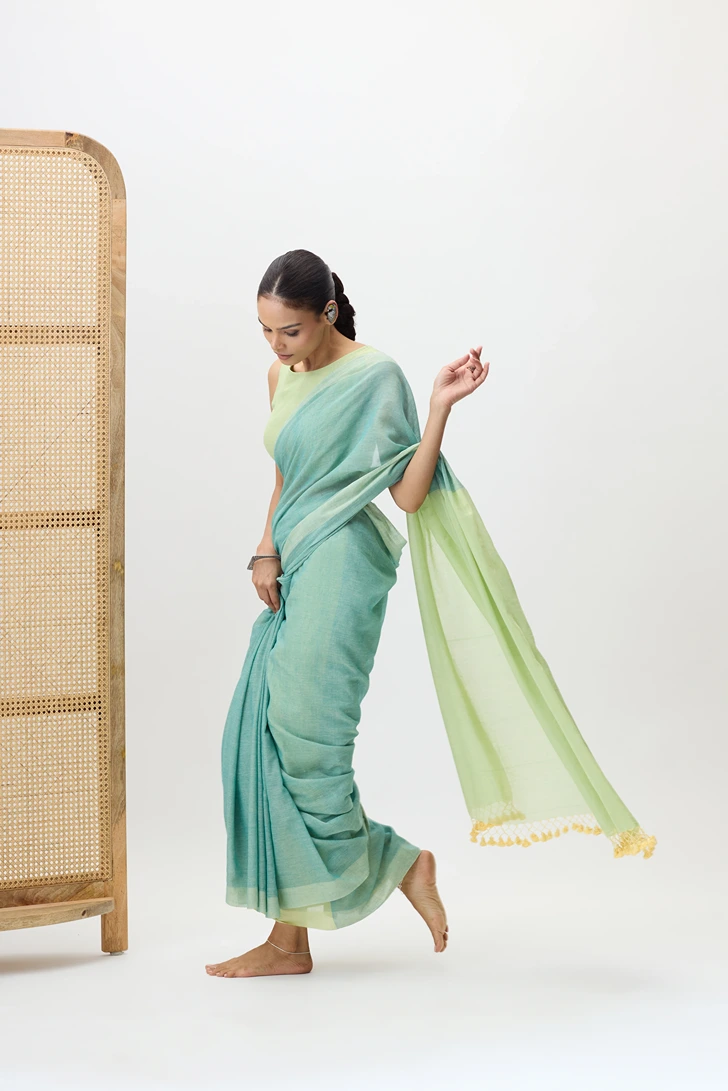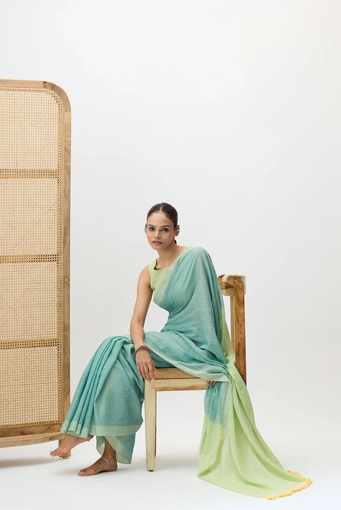 This handloom piece is a mul cotton saree made with lightweight, soft, breathable and fine handwooven cotton thread. It's delicate texture and natural sheen makes Varanya perfect for a casual as well as a formal choice.