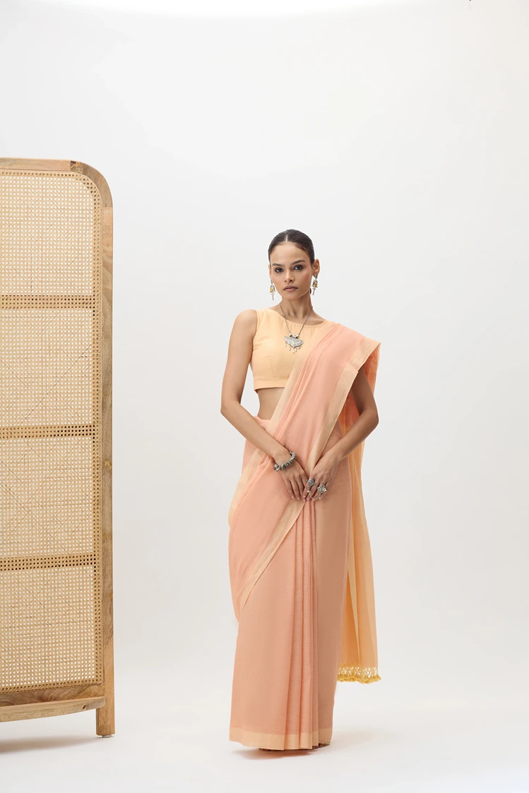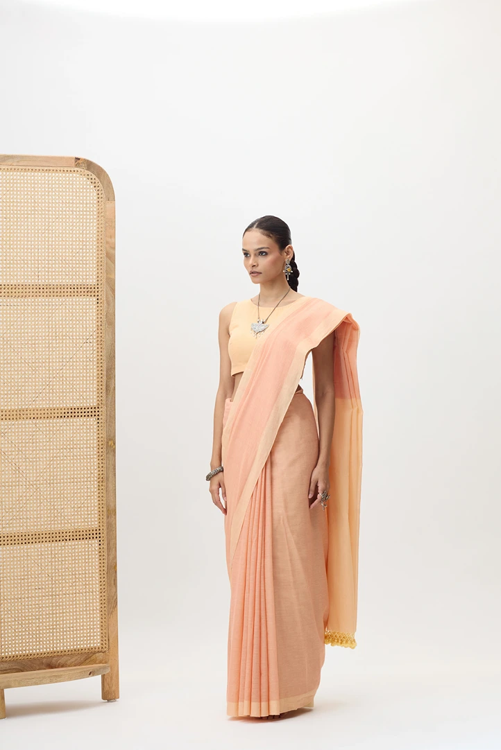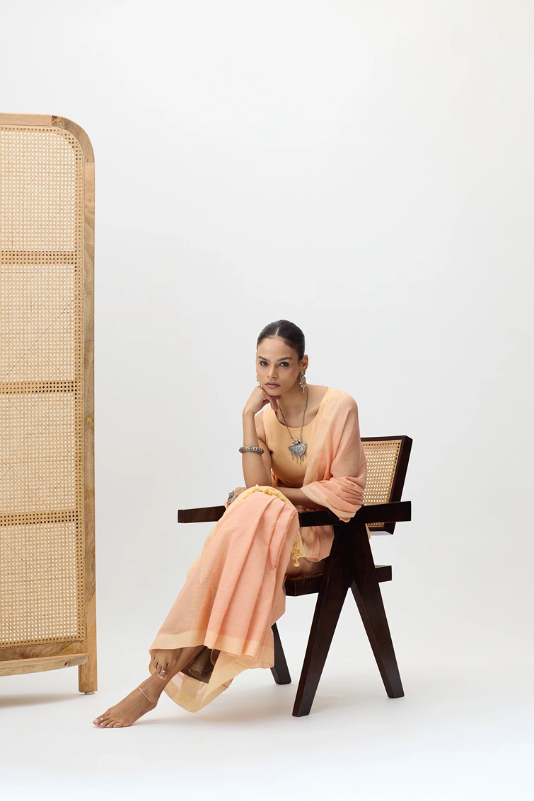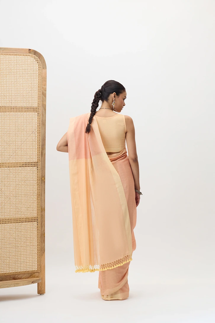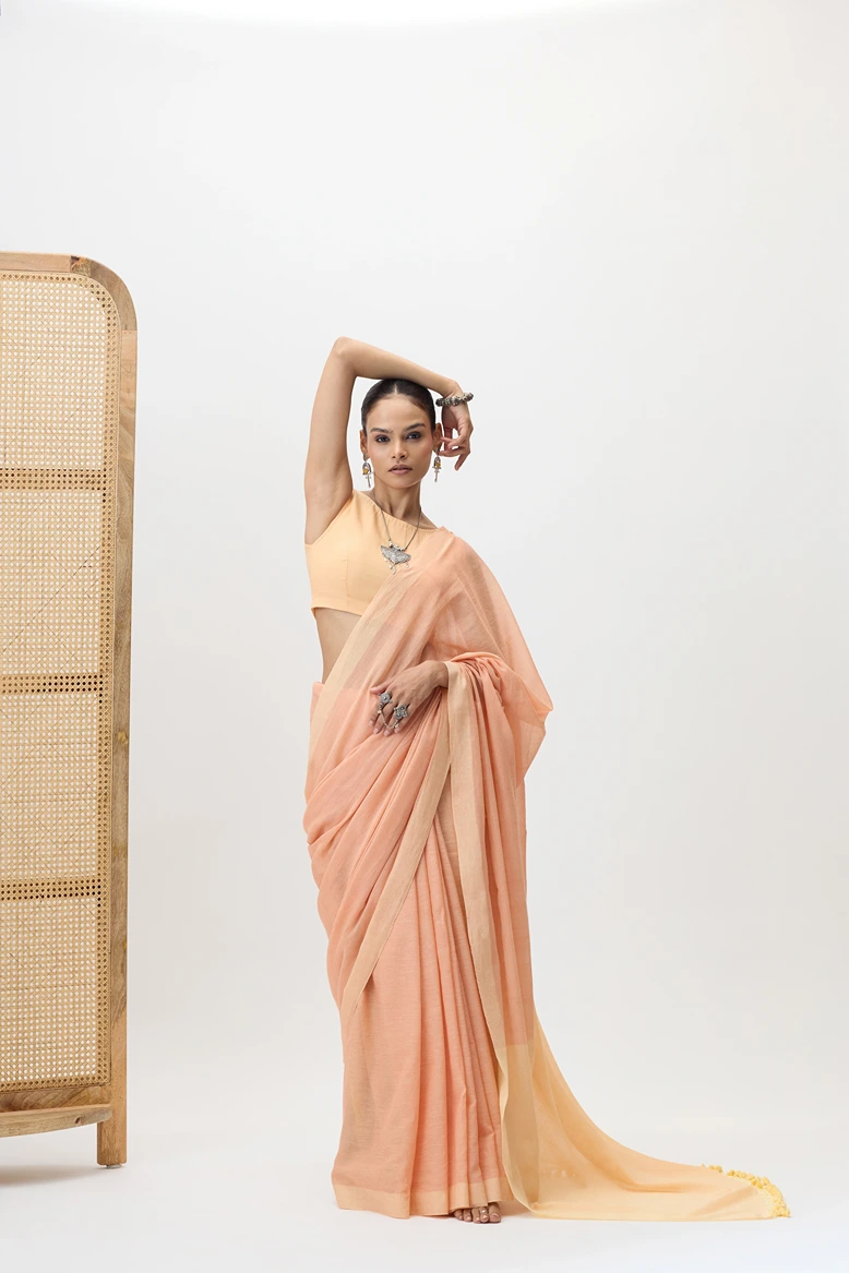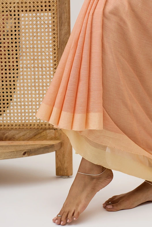 This handloom piece is a mul cotton saree made with lightweight, soft, breathable and fine handwooven cotton thread. It's delicate texture and natural sheen makes Varanya perfect for a casual as well as a formal choice.